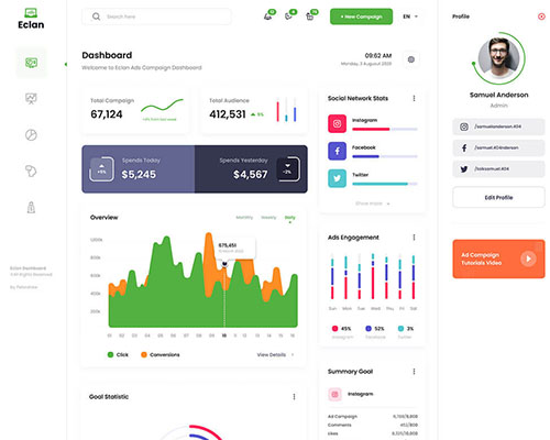 Eclan - Ads Campaign React Redux Admin Dashboard Template